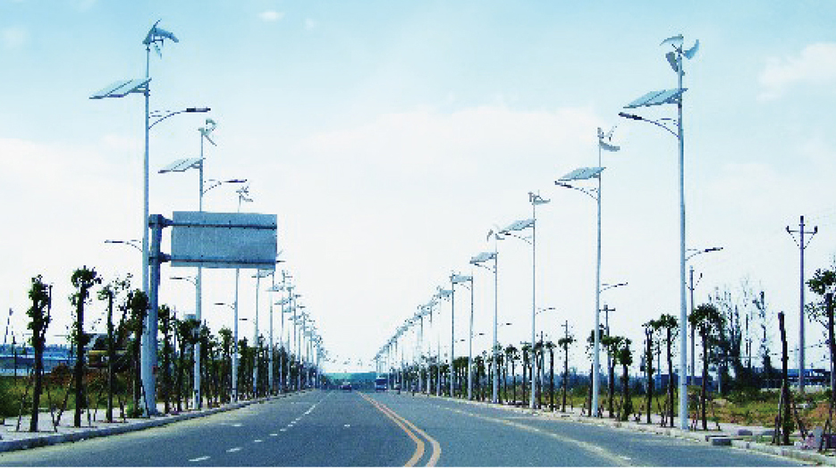 生態(tài)道路長度為1.6KM,紅線寬度為34M,道路照明選用燈具為風(fēng)光互補LED燈,燈具功率為110W,對稱布置于道路兩側(cè)。